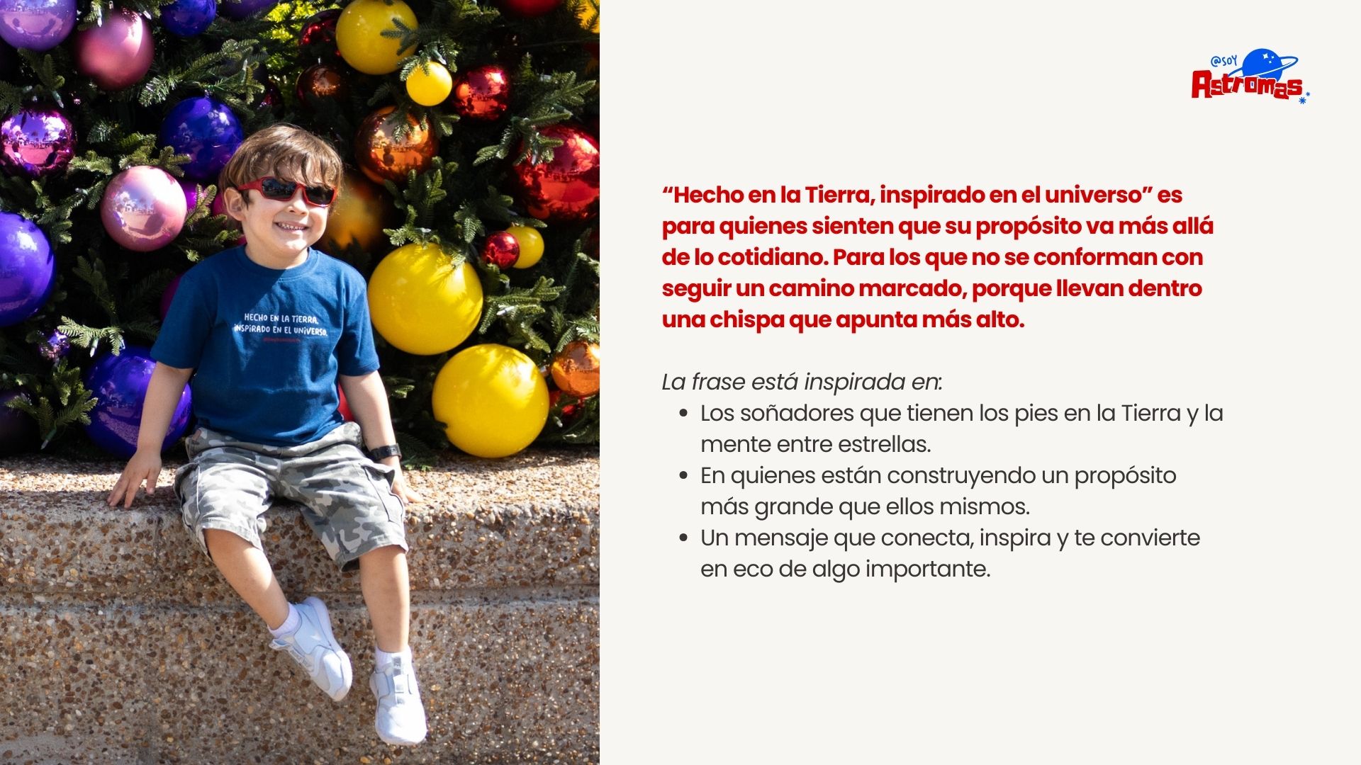 “Hecho en la Tierra, inspirado en el universo” es para quienes sienten que su propósito va más allá de lo cotidiano. Para los que no se conforman con seguir un camino marcado, porque llevan dentro una chispa que apunta más alto.